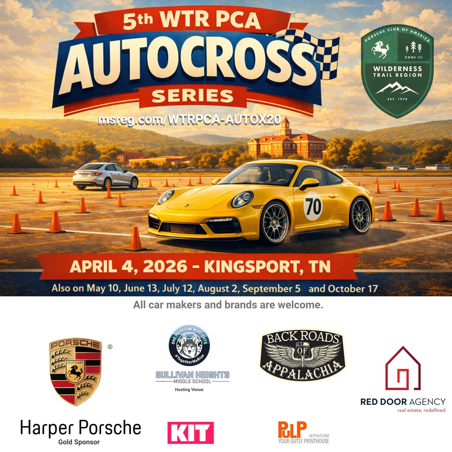 We are excited to officially invite you to the 2026 Wilderness Trail Region Autocross Series, now hosted at our brand-new venue: