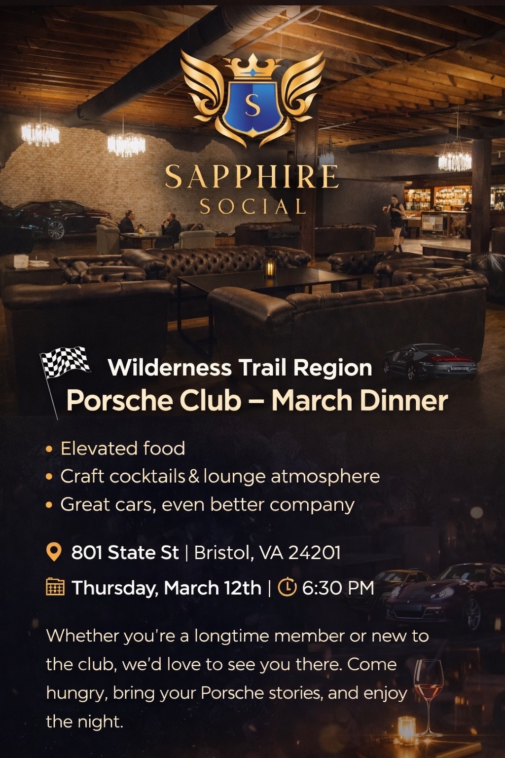 Whether you’re a longtime member or new to the club, we’d love to see you there. Come hungry, bring your Porsche stories, and enjoy the night 🌙.
